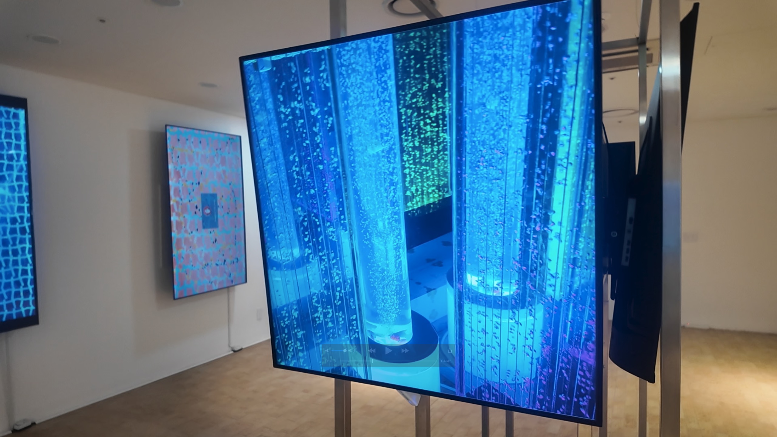 AI는 격자의 간격과 밀도 변화를 계산해 응집과 확산의 흐름을 만들었다. 화면 속 구조는 천천히 모였다가 흩어지며 유동적인 장면을 형성한다. 참여 작가들은 여기에 모핑과 레이어 변화를 더해 회화 안에 잠재된 리듬을 영상으로 드러냈다.